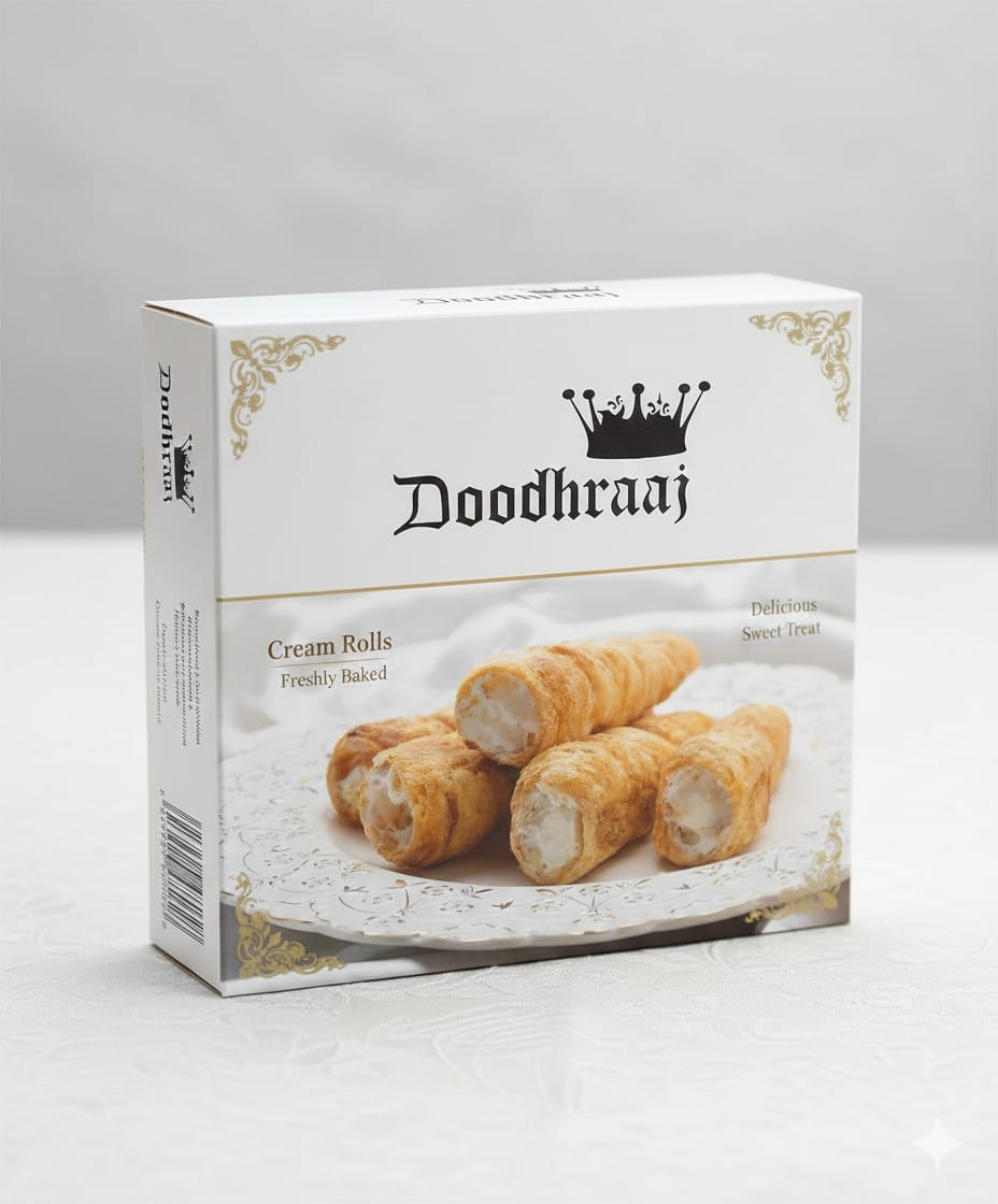 Cream Roll by Doodhraaj is prepared using high-quality bakery ingredients and traditional baking techniques. The rolls are carefully baked until golden and crisp, then filled with smooth, lightly sweetened cream to create a perfect balance of taste and texture—just like fresh bakery-style cream rolls.